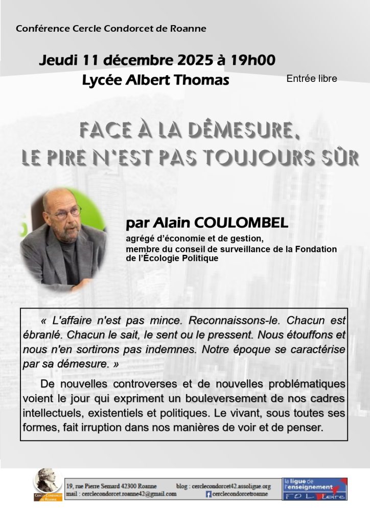 Pour cette conférence, nous aurons le plaisir d’accueillir Alain Coulombel auteur de ouvrage « Petit traité de la démesure » (Alain Coulombel, éditions Le Bord de l’eau, paru le 4 octobre 2024).